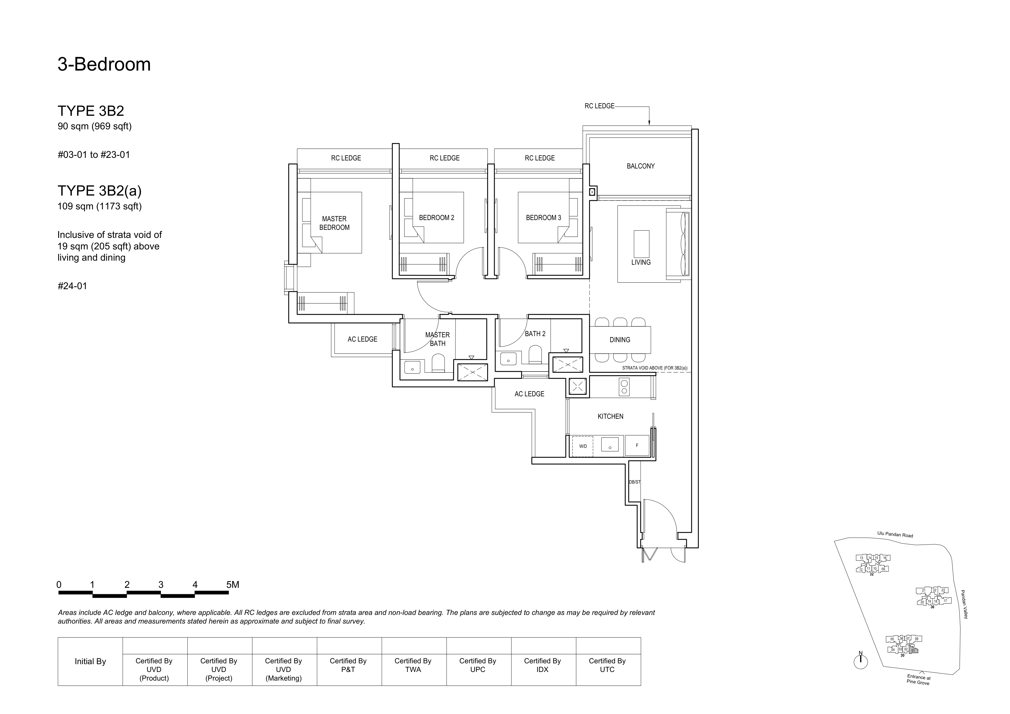 | 3 Bedroom Premium + Study | 91 | 1,216 - 1,421 | |