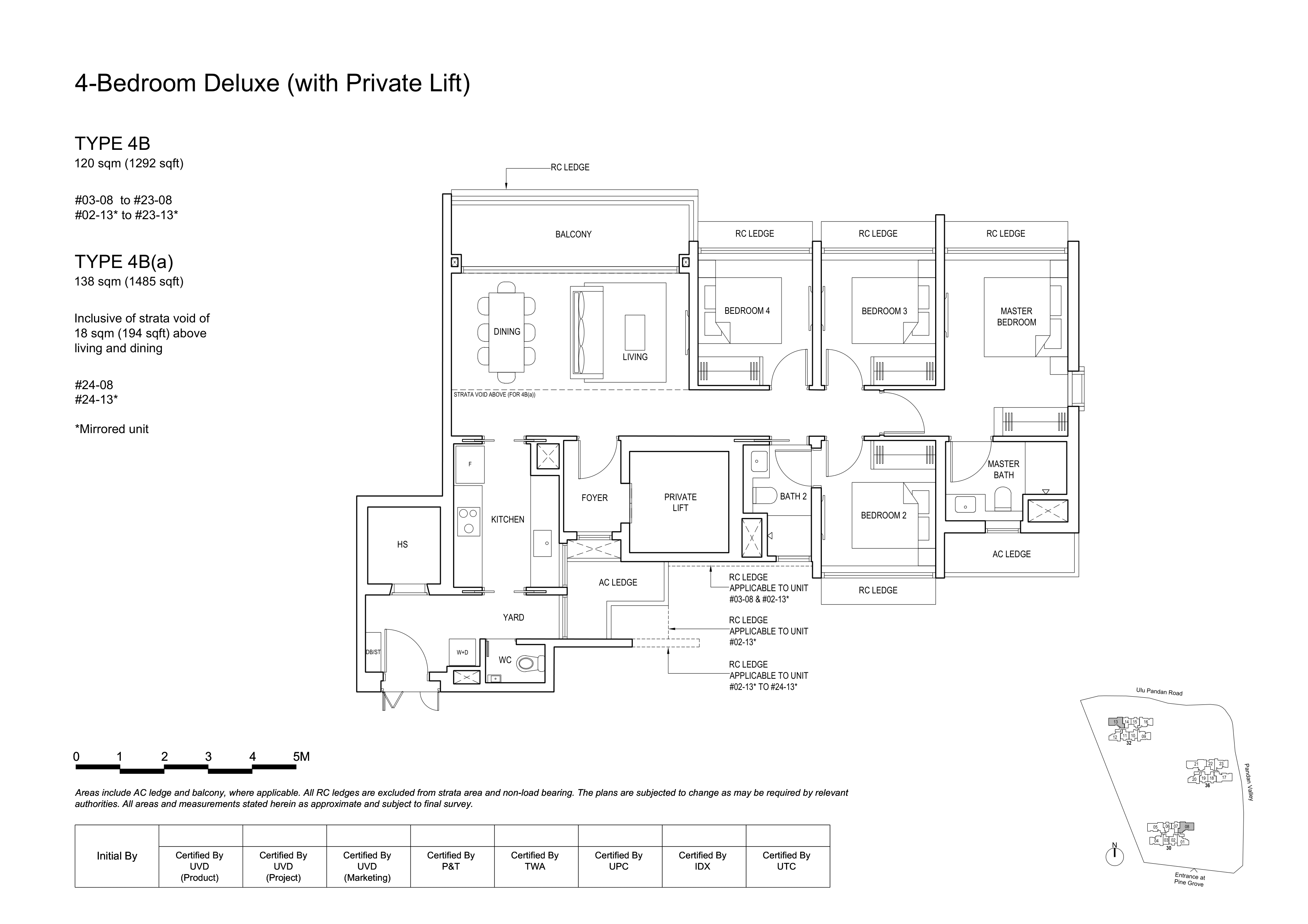 | 4 Bedroom Deluxe (Pte Lift) | 45 | 1,292 - 1,485 | |